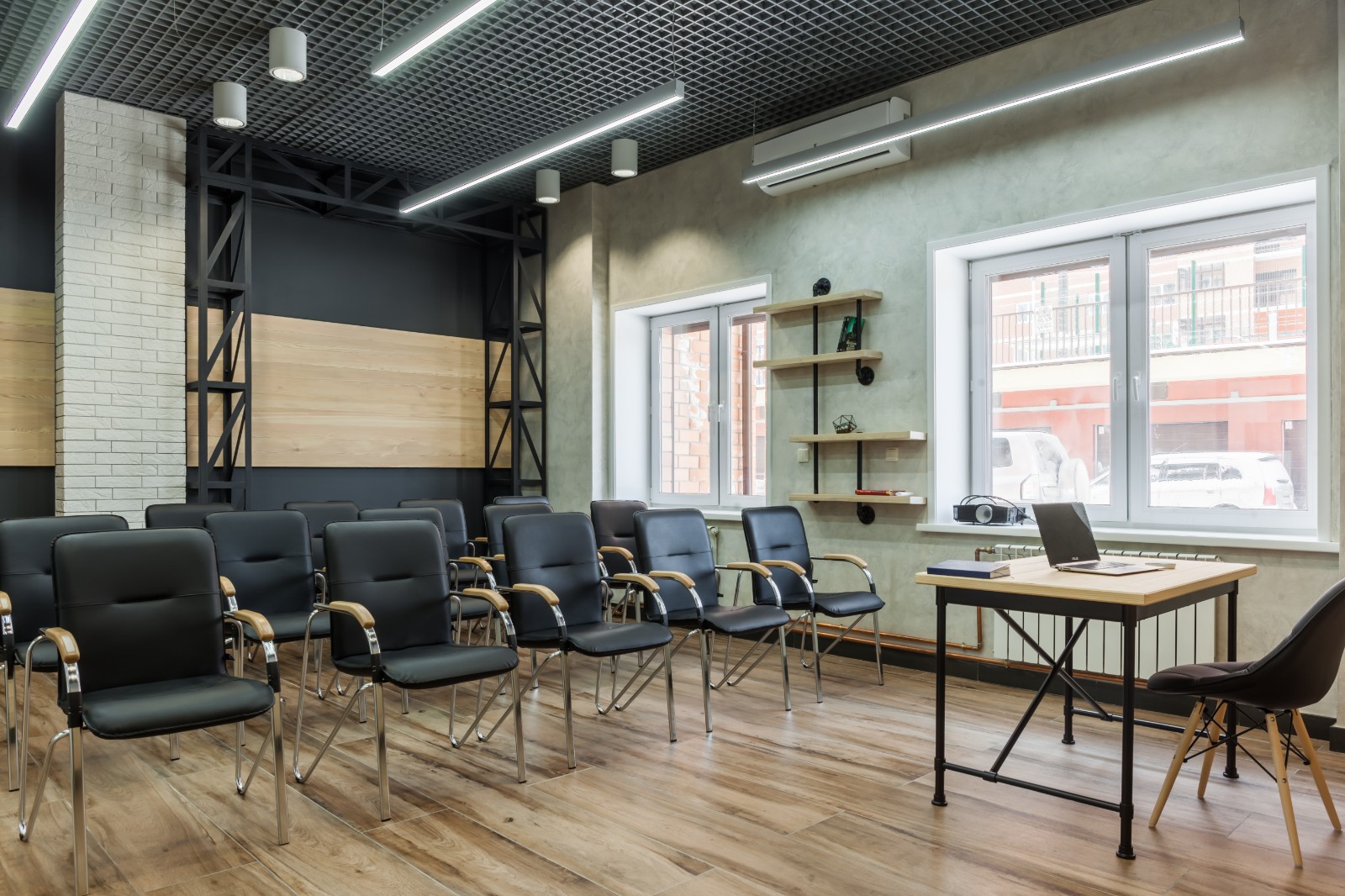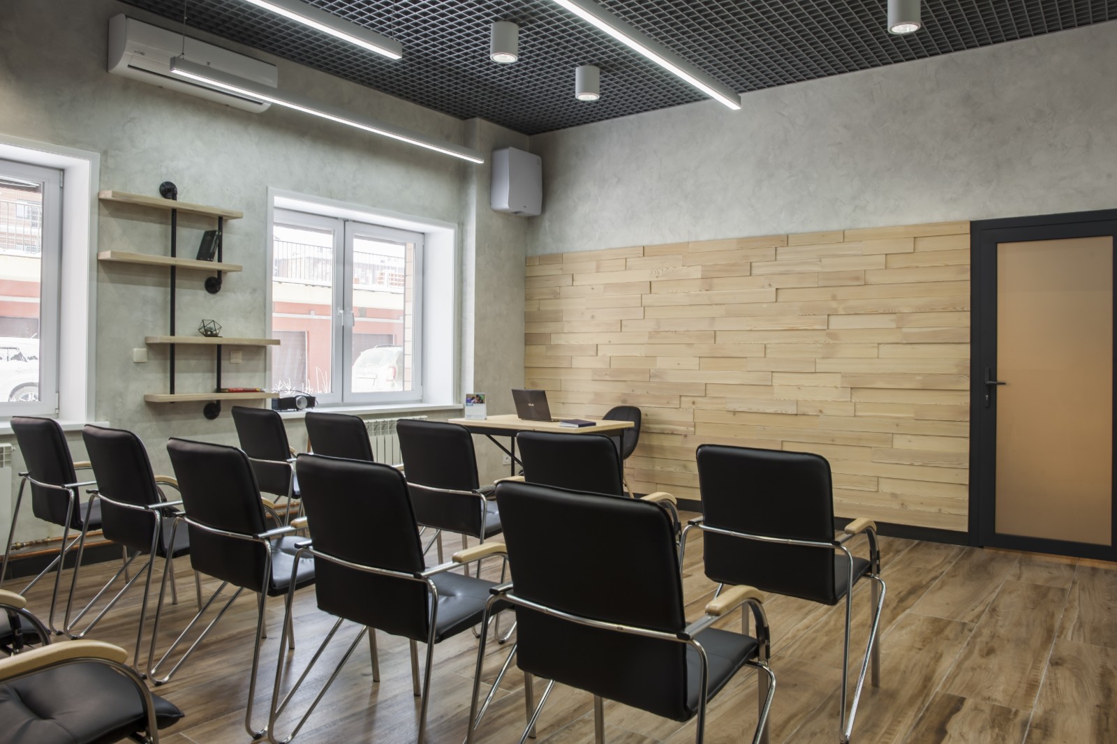 Проводили тренинг для сотрудников — всё было на высоте. Особенно понравилось, что в зале есть кулер с водой и всё выглядит очень современно. Интерьер в стиле Байкала — уютно и мотивирует на работу.
