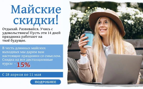 Майские скидки 15% на дистанционное обучение!