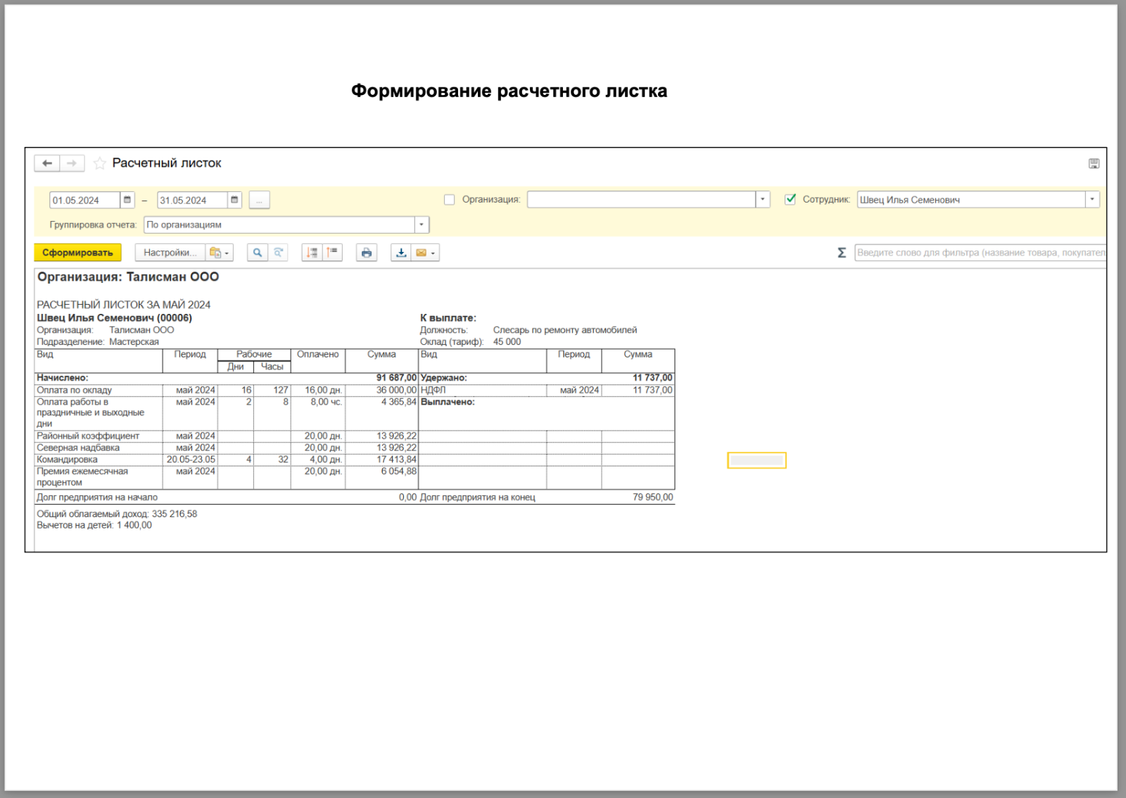 • Производить ввод и расчет больничных листов и отпусков разного типа, ввод разовых и долгосрочных доплат и удержаний
