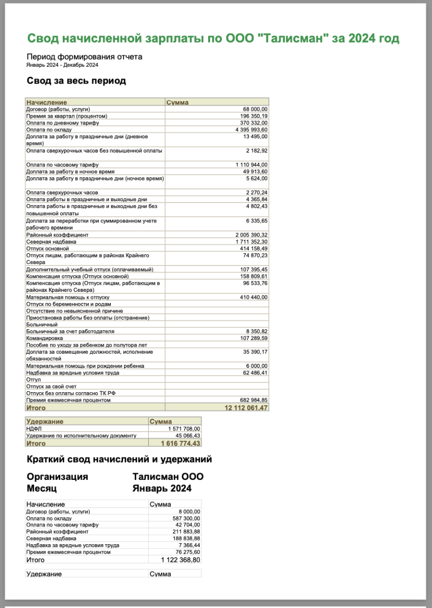 • Формировать список проводок по зарплате и экспортировать его в конфигурацию "Бухгалтерия предприятия"
