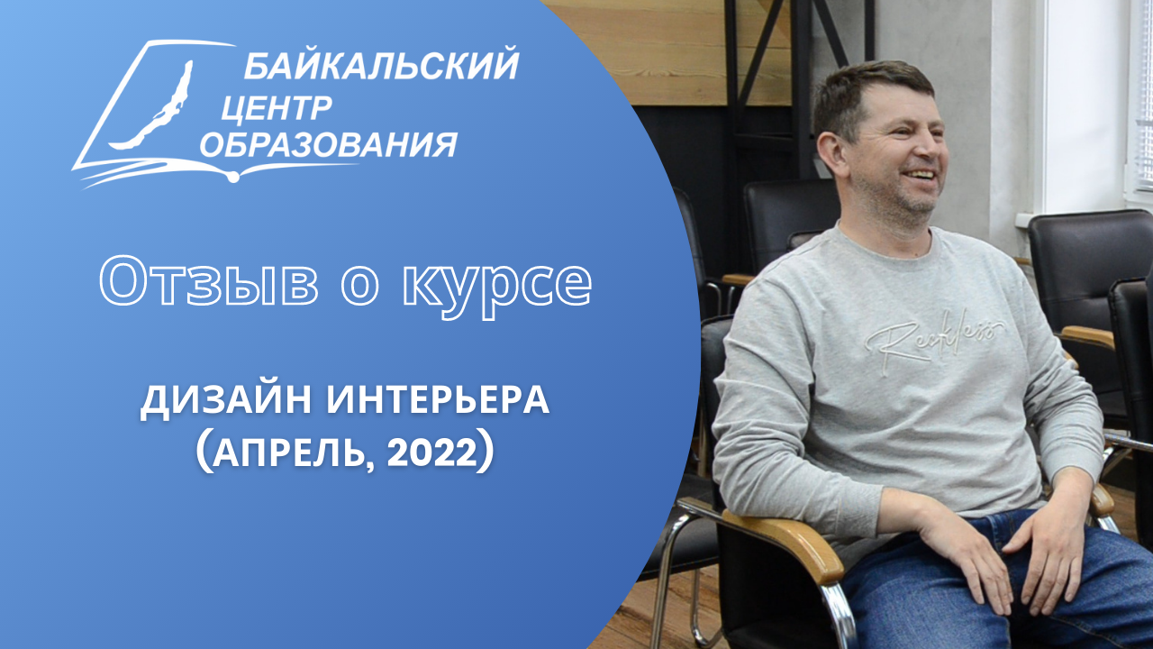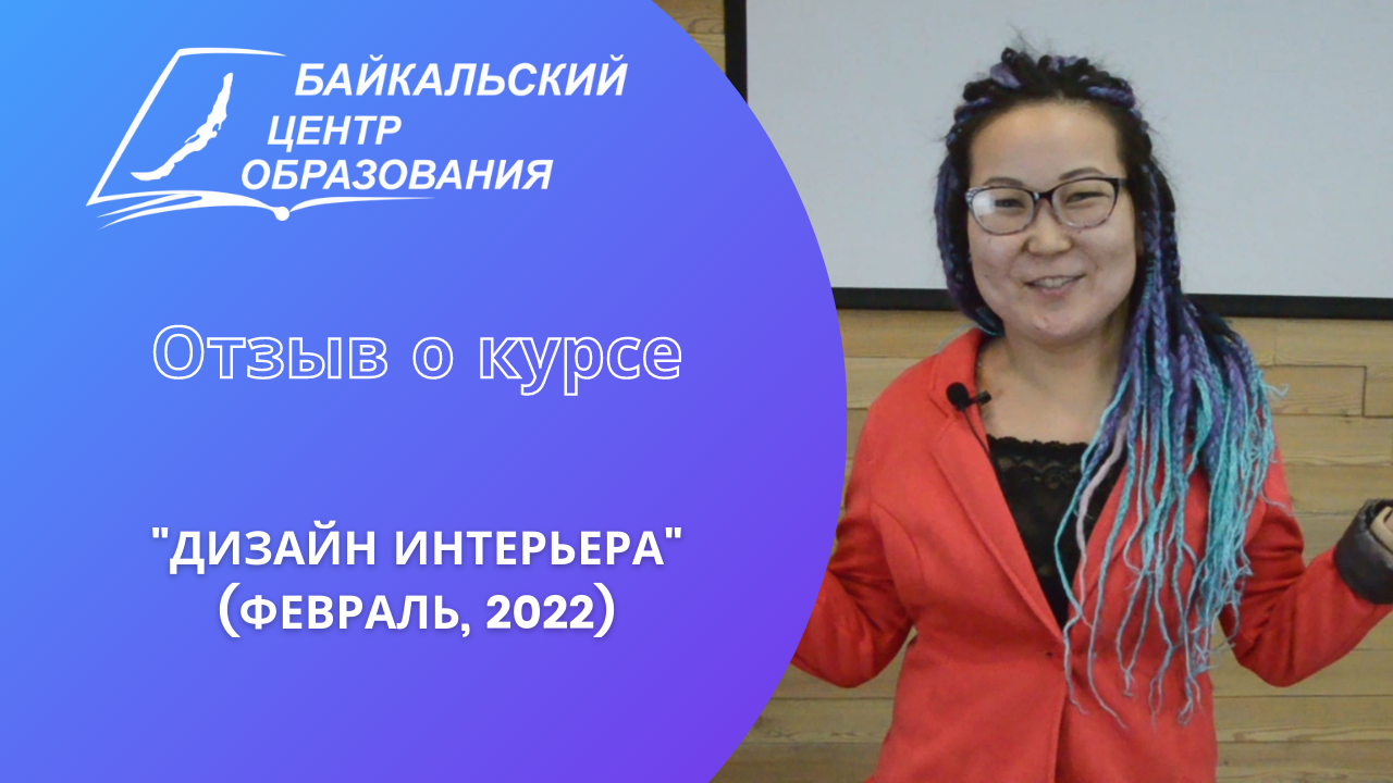 Курс "Дизайн интерьера". Преподаватель Ашихмина Евгения Михайловна Выражаю большую благодарность за курс по дизайну интерьера! Байкальскому центру - за организацию процесса, отличное современное оснащение и комфортную, располагающую к освоению творческой профессии атмосферу. Отдельное спасибо преподавателю - Евгении за переданные нам знания, опыт, и, конечно, за терпение! Благодарю и, разумеется, рекомендую этот центр!