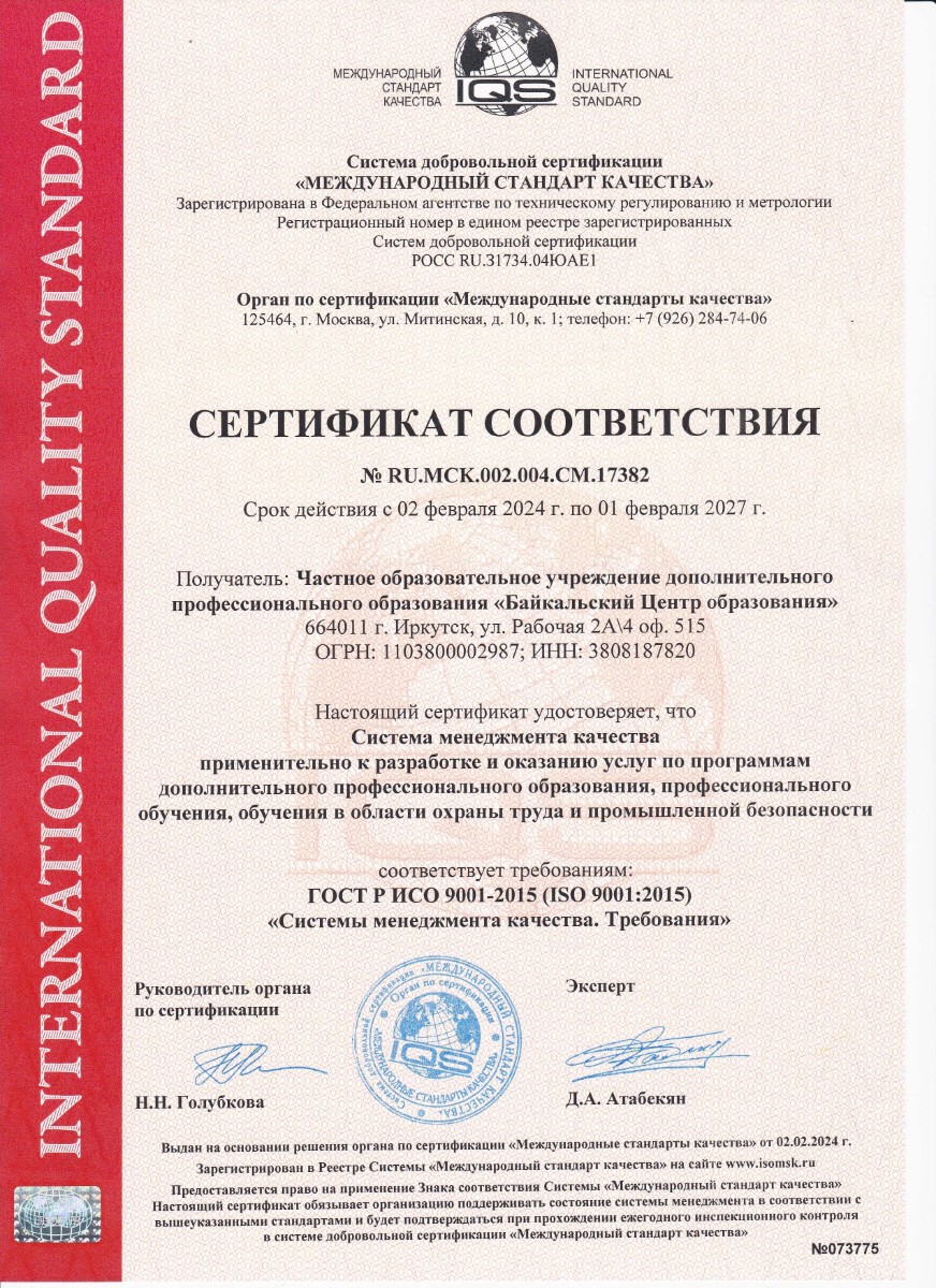 • г. Иркутск в учебных аудиториях Байкальского Центра Образования по адресам:  ул. Гоголя 80 ЖК Изумруд  ост. Шмидта или Рабочая 2А /4 оф. 515  БЦ Премьер
