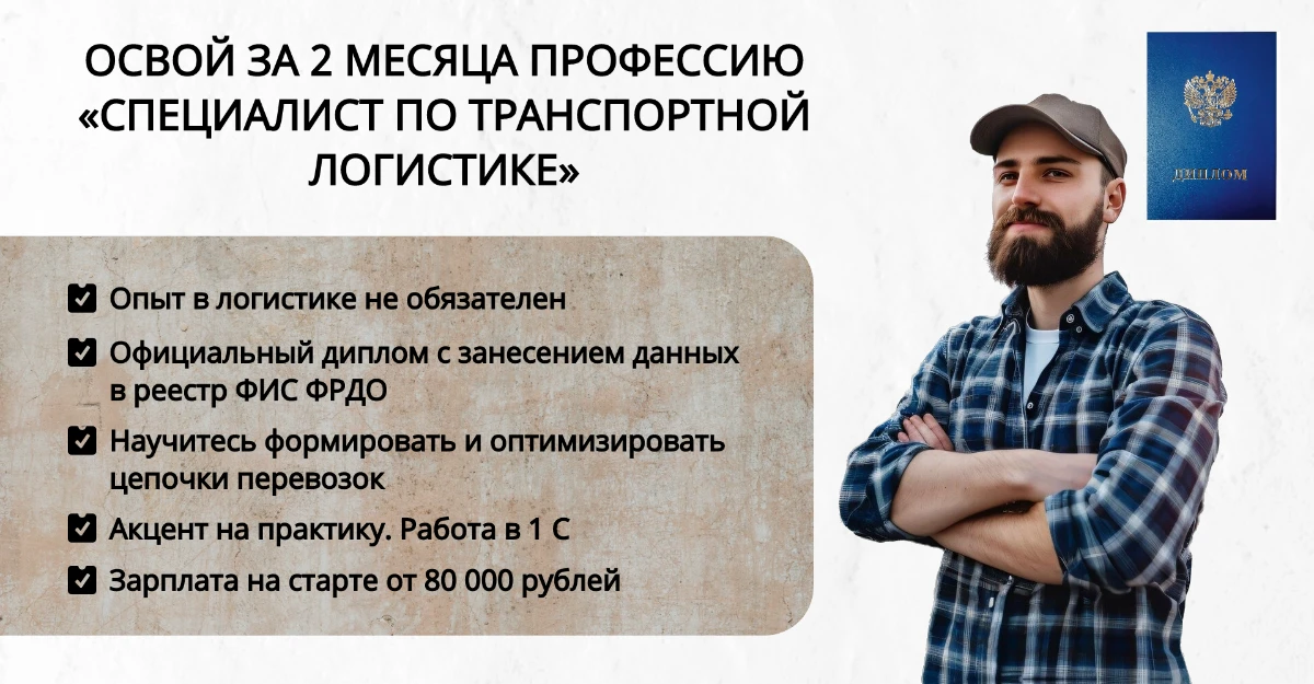 После завершения обучения выдается диплом установленного образца о профессиональной переподготовке по курсу «Специалист по транспортной логистике».